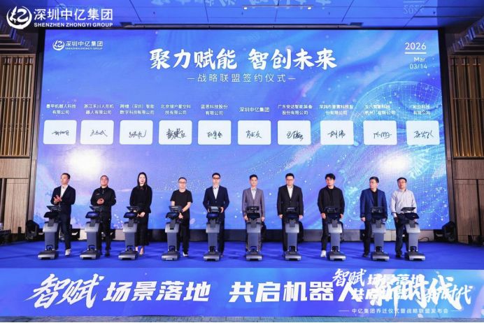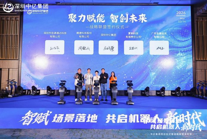 【深圳讯】3月14日,深圳中亿集团乔迁暨战略联盟发布大会在深圳市南山区李宁中心举行。大会以"智赋场景落地·共启机器人新时代"为主题,集中呈现中亿集团在机器人超级连接、群体智能调度平台及产业生态合作方面的阶段性成果,并正式发布机器人产业生态合作计划。