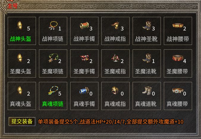 先说“天命系统”。说白了就是用装备换属性:提交指定装备,单项满5件,战道法生命值分别涨20、14、7点;全提交满了,再送10点攻魔道。这里有个细节老玩家都懂,主号搞定了别急着回收装备,打开英雄状态栏,给他也来一套。英雄强了,合击威力自然跟着涨,这账怎么算都不亏。