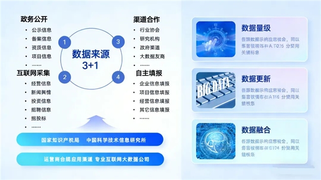 汇聚政务公开、互联网采集、合作渠道、企业自主填报等“3+1”数据来源,形成全域融合的数据资源池。
