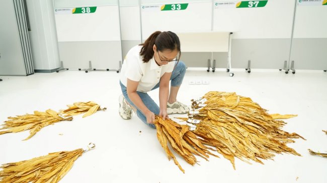 初入行业时,非科班出身的聂晓静面对繁杂的《烟叶分级国家标准》和细微的烟叶品质差异,深知烟叶评级是产业关键环节,容不得半点马虎。她将国标手册当作“枕边书”,走到哪带到哪,写满批注的学习笔记、标注详尽的烟叶样品,摆满了她的办公桌。为练就“一眼准、一摸精”的硬功夫,她一头扎进复烤生产一线,成千上万次地看色泽、摸质感、闻香气、辨等级,指尖练出了辨识烟叶的敏锐触感,也练出了精准的感官判断力。同事们常说她“跟烟叶待在一起的时间,比跟家人还多”,而这份日复一日的坚守,让国标标准刻进她的脑海,感官判断形成肌肉记忆,也让她深刻体会到,烟叶评级没有捷径,唯有沉下心“泡”在烟叶里,才能做到心中有尺、手上有度。