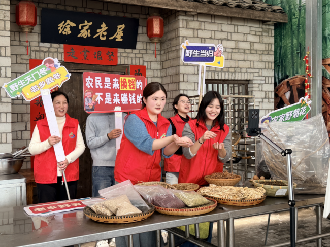 “家人们看过来!这是我们大别山的甜柿,自然成熟,甜得很!”“这茯苓是地道药材,品质实实在在,想要的抓紧下单!”在燕儿谷的直播间里,罗田烟草志愿者们正对着镜头卖力吆喝。
