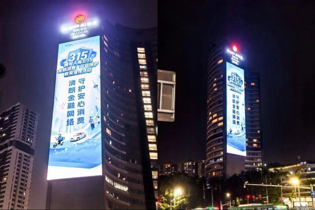 当3·15遇上城市灯火,一场潜移默化的消费者教育正悄然“点亮” 蓝色主题海报。 大大小小的“公屏”上亮起暖心叮咛,在城市的每一个角落“刷屏” 。