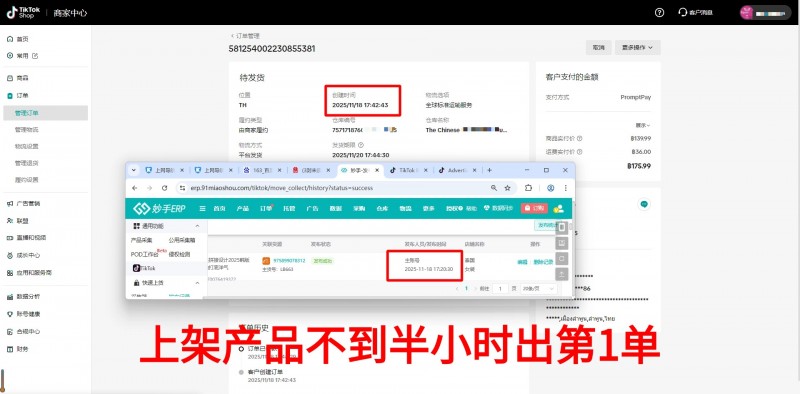 徐琳团队学员店铺,产品上架不到半小时,卖出第一单