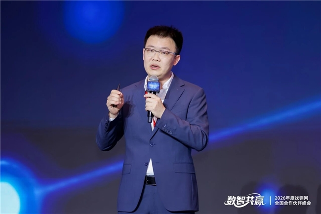 峰会在开场视频之后正式拉开帷幕。找钢网集团创始人、董事长兼CEO王东率先发表主题演讲,围绕“钢铁流通发展趋势及找钢AI转型之路”,系统回顾了找钢网2025年的成绩,深入研判行业六大趋势,并全面阐述了找钢网从交易撮合平台向AI驱动的全链路科技服务平台转型的战略路径。