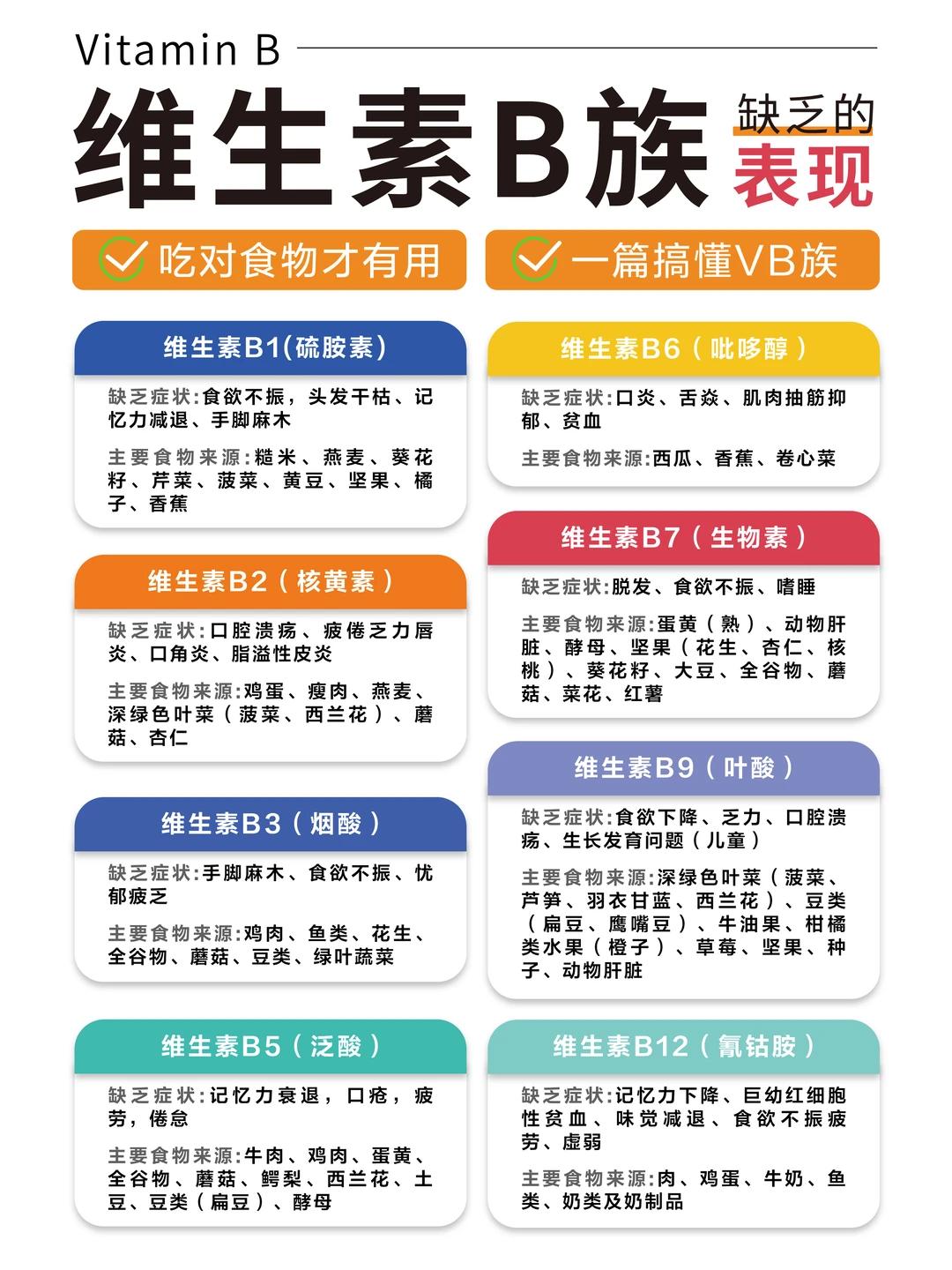 李珈贤指出,现代人的生活习惯和饮食结构,决定了B族维生素缺乏成为普遍现象。首先,饮食过于精细,精米白面在加工过程中,富含B族维生素的麸皮和胚芽被去除,主食中的B族含量大幅降低;其次,长期熬夜、压力大、过量饮酒,会让身体对B族维生素的消耗成倍增加,酒精还会直接破坏B族的吸收;此外,严格素食者由于无法从动物性食物中获取B12,更容易出现B族缺乏,而老年人、胃病患者等群体,吸收功能减弱,也可能面临营养缺口。