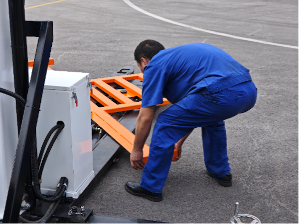 该设备融合全电动托盘搬运、液压同步升降、智能电气控制与高强度结构设计等先进技术,升降高度可在2米至7.2米之间精准调节,轮胎力臂支架适配90毫米至210毫米的挡泥板高度,覆盖主流货车车型。设备机动性强,显著降低对固定卸车点位及人力资源的依赖,优化物流调度流程。整套设备拆装仅需2人、15分钟内即可完成,无需专用工具,大幅提升了作业准备效率。
