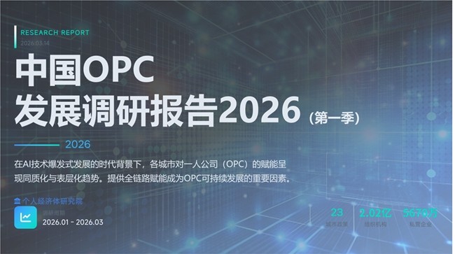 个人经济体研究院副院长陈北元发布《中国OPC发展调研报告2026(第一季)》。