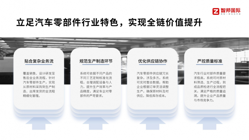汽车零部件行业正处于结构性变革的关键时期,数智化转型是企业应对政策导向、适配市场变化、构筑核心竞争力的核心路径。智邦国际一体化ERP立足行业特性,以全链路一体化设计为核心,精准破解数据孤岛、流程割裂、合规压力、决策滞后等行业痛点,通过数据贯通、流程优化、智能赋能,为企业提供从基础管理到战略赋能的全场景解决方案。在国产替代、绿色低碳、自主可控的政策导向下,在新能源与智能驾驶爆发的市场机遇下,智邦国际将持续深化行业适配,不断优化产品功能、提升服务能力,助力汽车零部件企业实现数智化转型,从传统制造向智能制造、绿色制造升级,以数智化赋能高质量发展,在全球汽车产业重构中抢占战略先机,推动中国汽车零部件行业从“大国”向“强国”迈进。