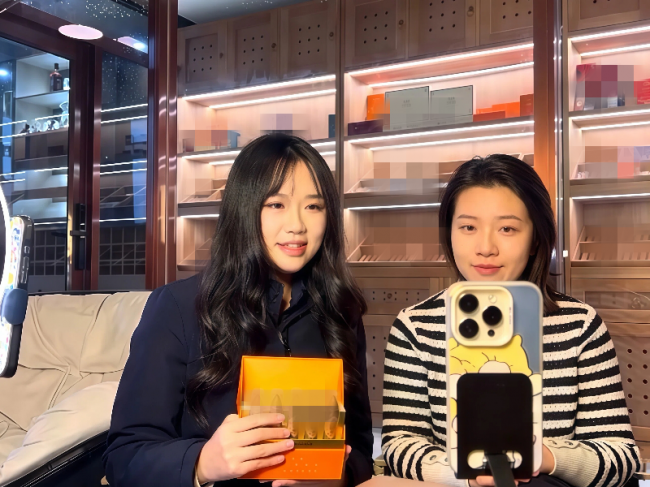 (图为职工与零售户直播宣传雪茄烟)