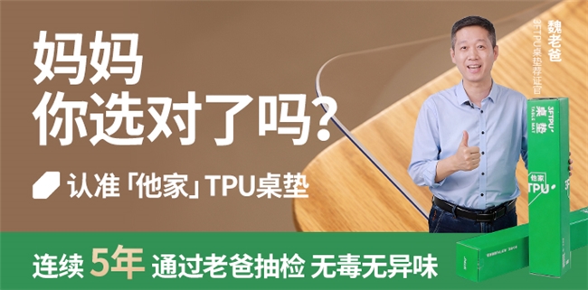旗下爆款3FTPU桌垫,更是顺利通过老爸抽检全项严苛测试,成为健康软垫品类首个官方推荐产品,让全家使用更安心。其他拳头产品:防水透明桌垫采用德国进口TPU纯净新料,完全拒绝回收料,确保品质卓越。食品级硅胶为原料制成奶嘴硅,耐高温消毒、不易老化。专利防滑地垫采用优质PVC材质,优良的防污特性及特别防滑设计都深得消费者青睐,销量领先。