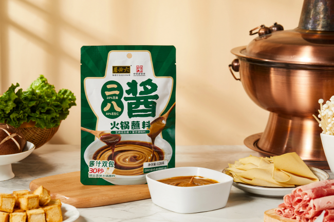 在此基础上,六必居进一步将创新延伸至消费场景,以“场景化解决方案”叩响年轻市场。针对快节奏生活与“懒宅经济”,推出独立酱包+汁包的“二八酱火锅蘸料”,30秒即可调出地道风味,精准切入便捷用餐场景。更通过“万物皆可酱”的跨界思维——与盐津铺子大魔王共创六必居麻酱味素毛肚,与统一合作京味酱香炸酱面,与李子柒共创推出二八酱味螺蛳粉,与义利共创推出二八酱味威化饼干,让传统酱料融入零食与速食等多领域。此外,二八酱奶茶、酸奶昔、黑蒜月饼等茶饮、烘焙场景的创新,持续拓展着传统酱香的体验边界。