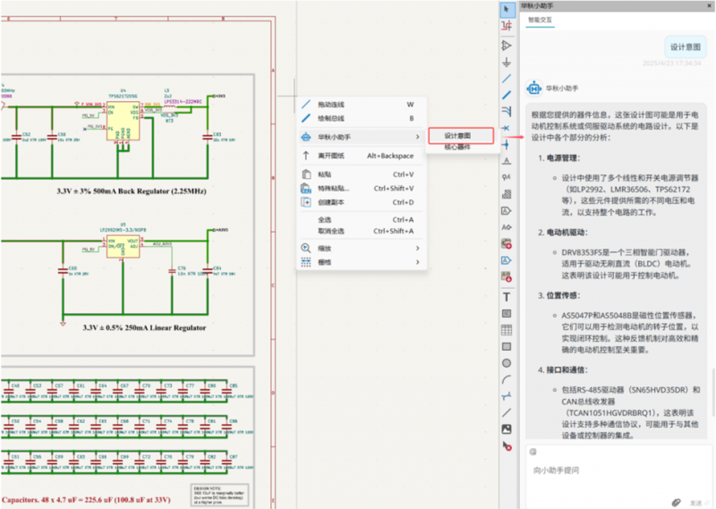 传统EDA工具依赖工程师下达明确指令,而华秋小助手实现了真正的"智能交互",它不仅听懂自然语言,更具备自主感知上下文的能力 。