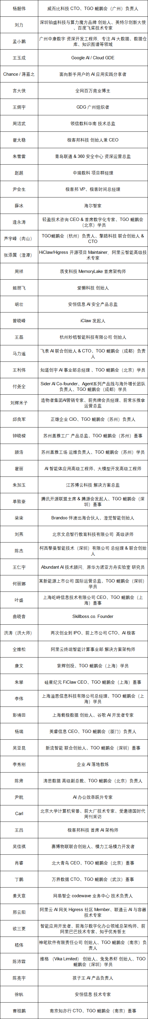 作为主办方,极客邦科技深耕 AI 生态十余载,构建了完善的技术服务体系,旗下 AI 创业者同侪学习平台——TGO 鲲鹏会、AI 应用发布和发现平台——模力工场、AI 学习平台支持——极客时间,AI 开发者前沿资讯社区—— InfoQ,全方位联动,为活动提供内容策划、讲师邀请、宣传推广、学习资源等全流程支持,其中 TGO 鲲鹏会各城市负责人全程参与致辞、统筹,成为活动落地的重要支撑。