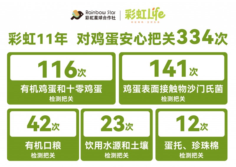 11年来,彩虹星球仅鸡蛋安心把关就达334次,每一批产品,都有可追溯的检测报告。