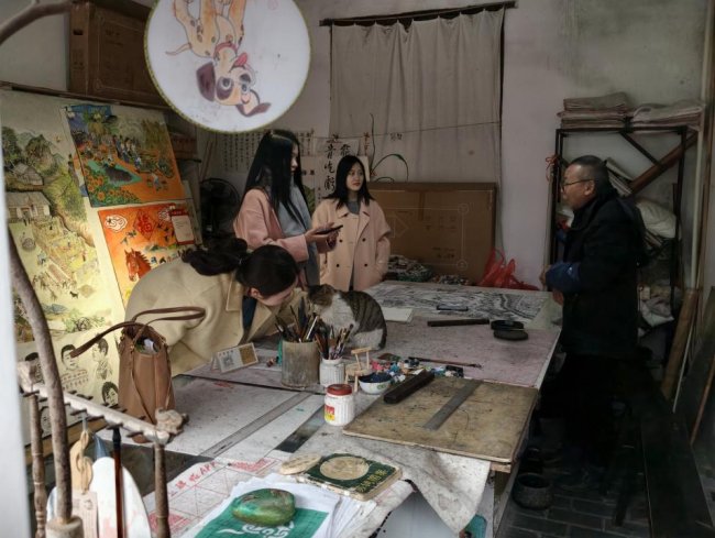 (图为青年员工聆听画师创作过程)