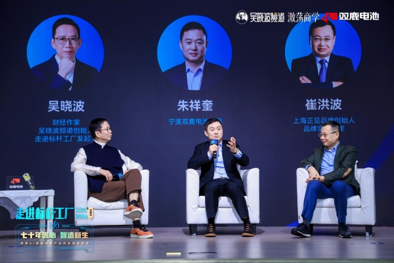 吴晓波则在随后的主题分享中,以双鹿电池70余年的发展历程为缩影,复盘了中国制造业从引进生产线、突破技术封锁、建设黑灯工厂到拥抱AI研发的完整迭代史。