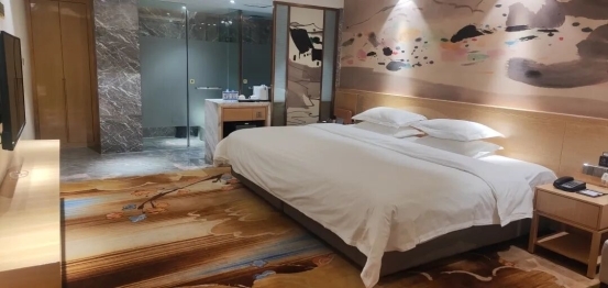 举个例子,蔡总酒店原有的商务客房,本身就能够满足商务客群的需求,且家具等用料都不错。星程团队就没有对这些客房进行太大的改动,仅仅是将难打理的地毯,替换成能够快速覆盖翻新的鱼骨纹木地板,让整个空间更为清爽。