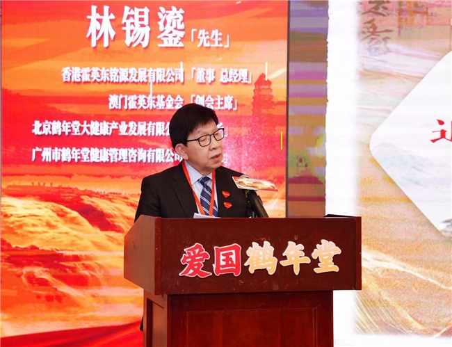 活动现场,追随霍英东先生三十五载、年近八十高龄仍奋斗不息的香港霍英东铭源发展有限公司董事、总经理林锡鎏先生作为“新朝阳人”代表发言。他用一个甲子的光阴,诠释了“一辈子跟随一个人,坚守一件事”的赤诚与坚守。从广州市的世贸中心大厦、南沙大酒店到霍英东鹤年堂中医城,他的经历生动演绎了“爱国者更健康,有为者更不老”的精神内核。演讲最后,他郑重承诺将毫无保留地调用最优质资源,全力以赴支持“新朝阳工程”公益项目,赢得了全场嘉宾的敬意与掌声!