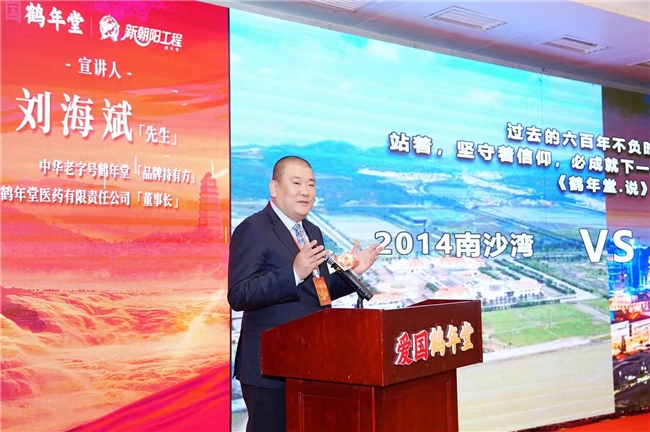 随后,中华老字号鹤年堂品牌持有方、北京鹤年堂医药有限责任公司董事长刘海斌先生登台。他深刻阐释了鹤年堂六百年“上医医国,先医良心”的浩然正气。他亲手写下的主题——“孩子太苦了,爸妈再出征”,不仅是一句口号,更是一封来自长辈的深情回信,旨在让长者的智慧再次出发,为奋斗中前行的年轻人点亮脚下的路,构建起老、中、青三代人并肩作战的和谐图景。