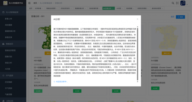 最后,平台依托大晓智能自研微调农业大模型,对汇总收集的全方位巡田数据进行智能化AI分析。区别于通用人工智能模型,该农业大模型针对小麦等农作物种植场景完成专项微调优化,深度适配本土田间气候、土壤条件与种植规律,能够精准解读卫星、无人机、人工巡检采集的海量巡田数据。模型可自动识别作物长势差异、病虫害隐患、田间杂草、水肥缺失等各类田间问题,智能研判农田生长状态与农事作业质量,输出专业化、场景化的种植分析结果与管护建议。有效规避人工经验判断的主观性与误差,进一步提升田间问题识别精度与农事决策科学性,让巡田不再只是简单的田间记录,而是通过AI赋能实现数据深度挖掘、问题智能诊断、农事精准决策,全面完善智慧农田巡检管理闭环。