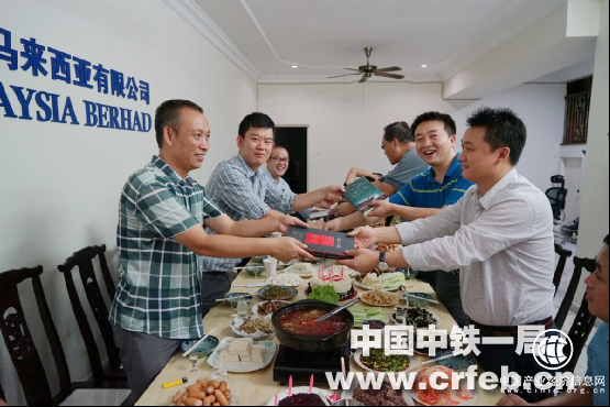 5月23日晚,马来西亚公司会议室,职工为3名五月份生日的员工集体过生日。海外事业部工会主席赵海,副总经理、马来西亚公司总经理焦小康为过生日的员工赠送书籍。