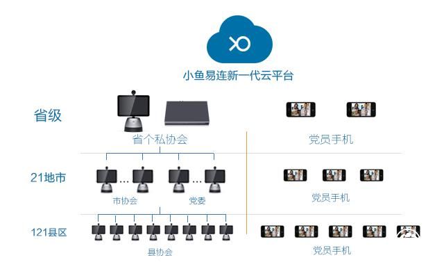 广东省私营企业协会于今年上半年完成了小鱼易连云视频会议解决方案的部署。通过在协会及会员企业中型会议室、小型会议室,领导办公桌的部署,搭配小鱼易连手机App及PC客户端,目前已经覆盖全省21个地级市,未来计划将覆盖121个下辖区县。