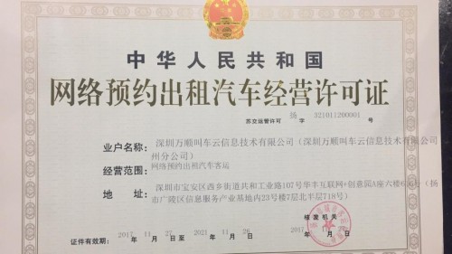 2017年11月27日,万顺叫车扬州分公司、新余分公司获得了当地交通主管部门颁发的“网络预约出租汽车经营许可证”。