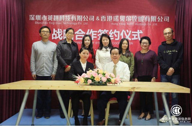 香港诺贝尔控股有限公司徐女士、英翘科技的创始人叶民俊先生签约合影