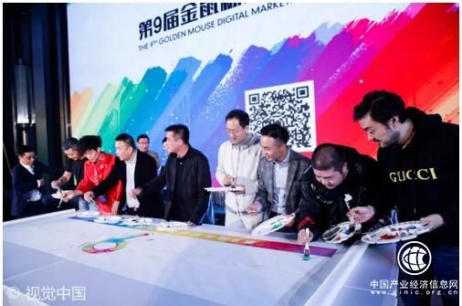 14日晚,12位嘉宾一起登台,用画笔为“第9届金鼠标数字营销大赛启动”的画布涂上颜色,预祝第9届金鼠标圆满成功,为数字营销行业带来更多精彩。