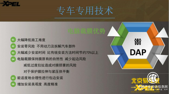 XPEL品牌从创建至今已走过20多年的辉煌,而作为XPEL品牌创始者的美国XPEL科技公司在20年里只专注做一件事——研发、生产高品质车衣。最终,XPEL公司成为车衣行业的标杆企业,拥有众多专利技术,所研发的“DAP”专车专用电脑裁剪软件大大提升了车衣切割效率,无需人工下刀,使车衣剪裁更为精准。