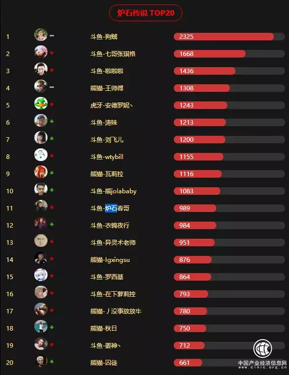 根据游久直播发布的《2017年11月主播游戏榜》榜单显示,在《炉石传说》板块前20的主播,斗鱼独占13位,占比达到65%,其中排名第一的狗贼在热度值上,比非斗鱼第一的高了接近2倍。