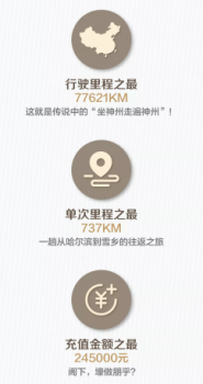 由于2017年全年各种优惠充值福利不断,因此,神州专车2017年充值金额之最达到了24万5000元,神州专车用户的豪气还体现在叫车次数上,2017年叫车次数之最为1960次,也就意味着即便全年无休,这位用户平均每天也叫车多达5次,有网友戏言:这是打个酱油都叫车的节奏。此外,如果说神州专车丰富多彩的多渠道福利受到广大用户的大力支持,那么,专车券必然是大热首选。数据显示,神州专车2017年专车使用券最多的用户,共使用1108张券。