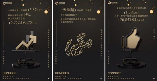 中再融运营人员表示,除了投资用户的理财账单界面,非投资用户也可以通过账单浏览中再融平台一年的成绩单,以及平台全年为投资用户发放的奖金额度,通过数据直观了解平台的发展状况。