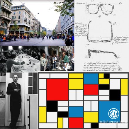 ▲荷兰著名EFE品牌眼镜、荷兰画家彼埃·蒙德里安和他的“冷抽象派”作品