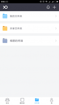 导航栏上的第三个图标为“文件夹”,小鱼易连APP支持三类文件夹,分别是“我的文件夹”(即用户个人的存储空间)、“小鱼文件夹”(即用户管理的小鱼终端存储空间)、以及“企业文件夹”(即所属企业共有的存储空间)。