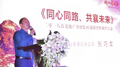 本次会议,蓝光发展执行董事长、总裁张巧龙先生对蓝光2017所做出的成绩进行了总结性发言,并向合作伙伴提出了未来合作规划与建议。
