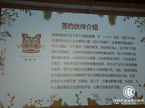 活动当天,原创网等四家企业与创新基地签订了战略合作协议,共同为中小企业品牌建设工作而努力。其中,原创网作为首家专注于原创文化领域传播的自媒体综合平台,覆盖全国85%以上的互联网媒体资源,65%以上的纸媒、广电等传统媒体资源,与20多家自媒体平台,上千个自媒体人形成长期合作,是我国第五大媒体供应商。原创网先后为周大生、DR珠宝、金至尊珠宝、屈臣士、妍丽集团、自然堂、景阳科技、世纪阳光、深圳云软、春申科技、宜信财富、信和财富、寰影传媒、大视界影视等上百家企业提供网络营销及线下活动媒体执行服务,是成都传媒集团云网客、百度秒排、互动百科、云速推深圳运营代理商。