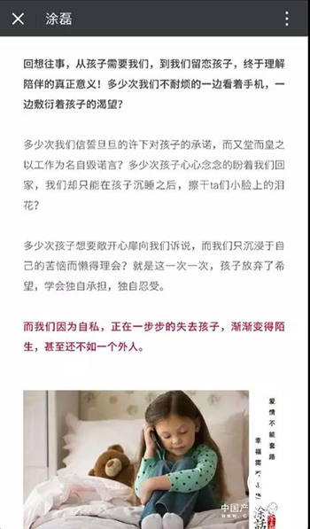 其中令人印象深刻的是涂磊老师的文章《陪伴的长情,终有期限!》: