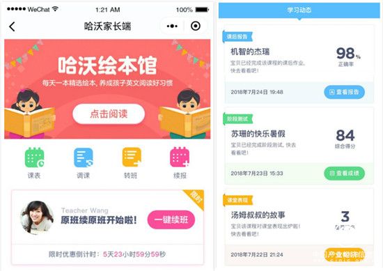 “三固定”模式对品牌运营和系统的严苛要求,一直是小班课乃至在线少儿英语教育品牌的一大难题,而哈沃依托于其强大的底层设计架构,顺利通过考验的同时,还以哈沃家长端的形式将服务进一步提升,为学员及家长提供了更多重选择。