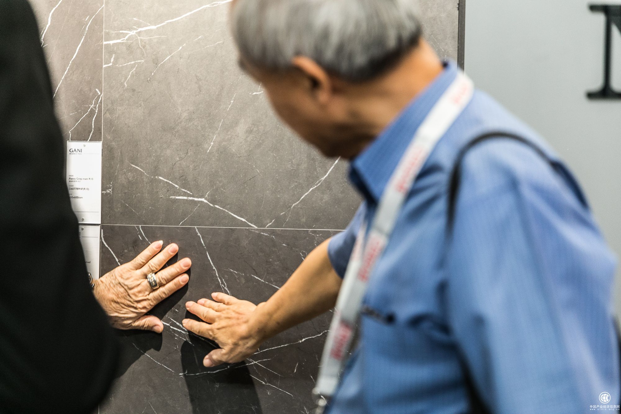 ▲简一大理石瓷砖展位上外宾驻足停留