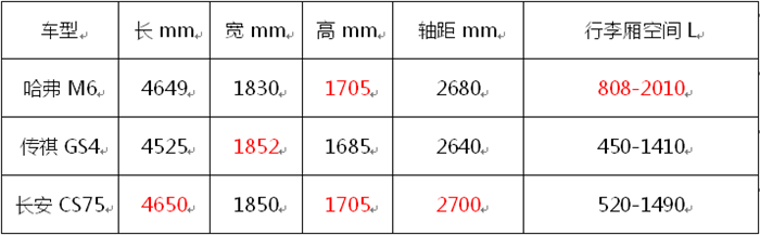 我们简单总结了一下三款车型的整体尺寸,具体如下: