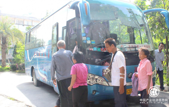 (图为2012年覃信出资48万元人民币自费购买33座宇通豪华大巴车,用于免费义务接送广西玉林市“两区五县”的肾透病人到玉林市第一人民医院做治疗。 记者 覃烨 摄)
