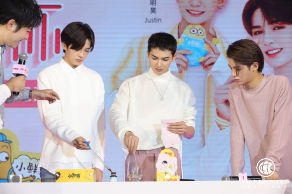 活动尾声,3位偶像代言人与天猫美妆知名品牌负责人颜竹、天猫新锐运营专家浓薄、小迷糊品牌总监子威一起参与了小迷糊新品发布的启动仪式,并预祝小迷糊双十一大卖!