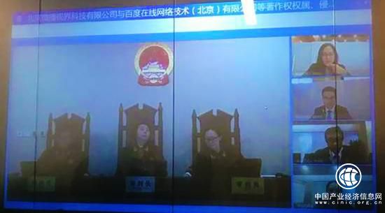 这起案件是短视频著作权的首起诉讼。一开庭,法官张雯端坐审判席正中,左右两侧各有两名陪审员。原告被告双方采用远程接入审判庭的方式,法官面前是一块三连屏幕,真人1:1大小显示。其中,左右两块屏幕为原告被告双方及其代理人,中间屏幕用于原被告双方展示证据。整个法庭呈现封闭状态,无关人员无法进入法庭,但可以通过法庭一侧的玻璃墙观看整个庭审过程。