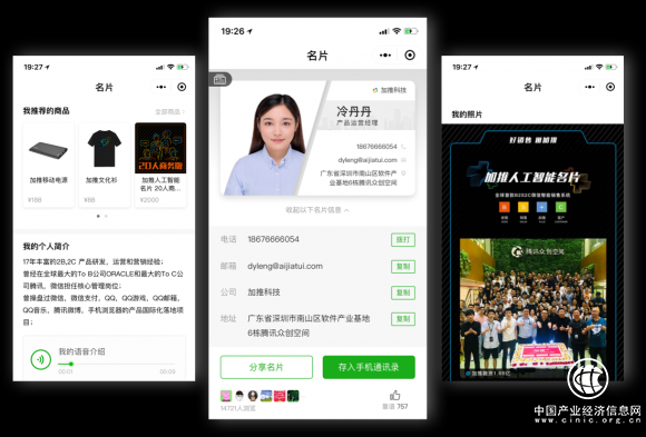 作为一个个性化的智能名片,是为了打造专属ip形象而专业制作的一种名片。进入加推科技的网站之后,有着专属于每个人的小程序名片的申请,在制作上仅仅只需要三分钟就可以完成一个人的专属小程序名片。