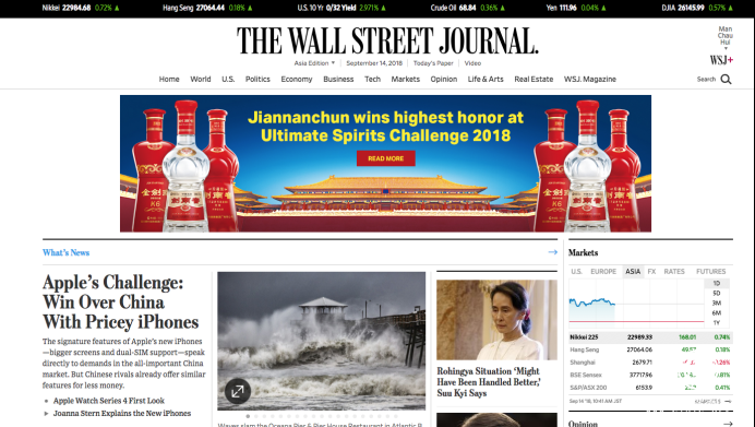 剑南春获国际大奖一方面向世界展示了中国三大名酒深厚的底蕴和优秀的品质,另一方面则彰显了国富民强,中国文化越来越被全球世界所认可的现实。环球时报用整整一个版面深度报道此次事件,西方重量级媒体《华尔街日报》也以头版头条的重要位置刊登本次获奖事件。