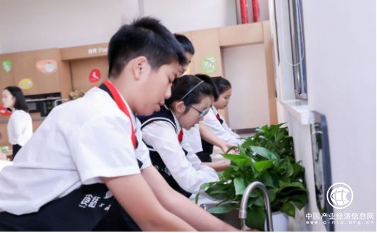 最后,每个学生都要清洗自己的餐具,值日的同学还要负责所有的牛奶盒都打开清洗一遍,晾晒后再集中回收。一切结束之后,孩子们还要自己动手,擦地清洁。学校在日复一日的午餐食育过程中,将学生培育成有序、有礼、有节的高素质人才,也教会了学生认识食物,与自然和谐相处的能力。