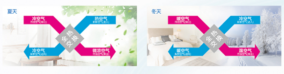 2、双向流热回收系统,节能舒适:中广欧特斯中央新风系统采用全热交换器形式,实现双向气流调节;通过高效异相膜热交换核芯,以高达75%的热回收效率,利用室内排风将引入新风进行预冷/预热,尽可能使引入新风接近室内气温,显著降低空调负荷,锁住室内舒适温度同时带来清新空气。