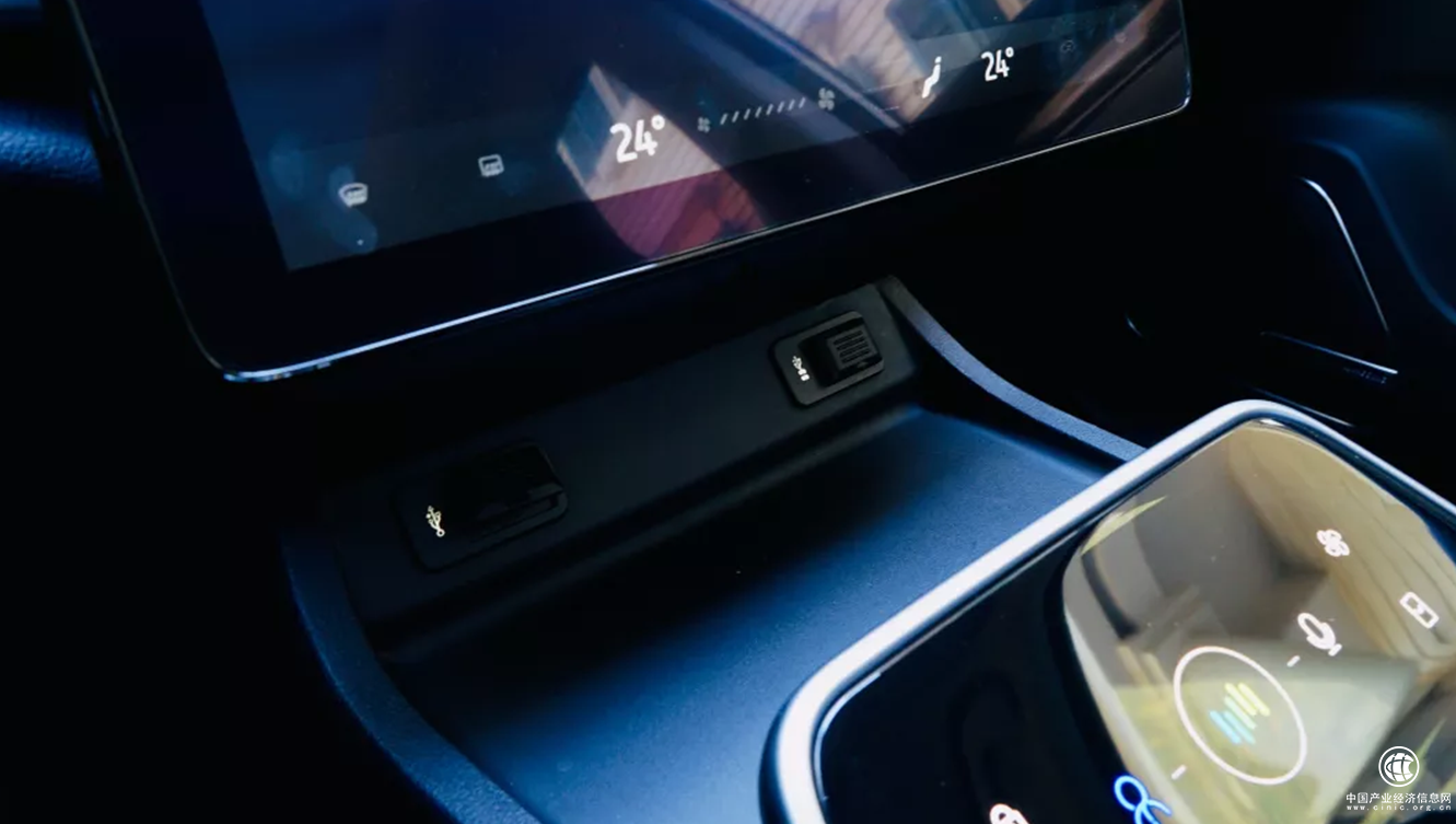此外,整个驾驶舱里面有8个USB充电口,在什么位置都不用愁你的数据线不够长,此外还可以选装无线充电功能。不过有两个USB又是比较“隐藏”的,就是中控屏幕的下方,当屏幕竖起来的时候这两个充电口就显得稍微有些影响使用便捷度了,设计的逻辑值得再进步一下。