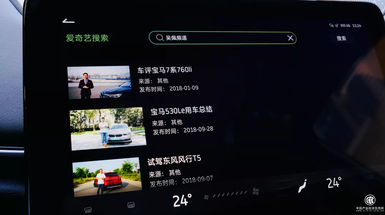 在这块屏幕的右侧,有音量控制键以及屏幕旋转键,按一下即可实现威马说的“影院模式”,屏幕可以横过来,这时候就可以观看与威马合作的爱奇艺视频,观看更方便、效果更好。不过出于安全考虑,只有在车辆静止的时候,才可以享受这种影院模式。